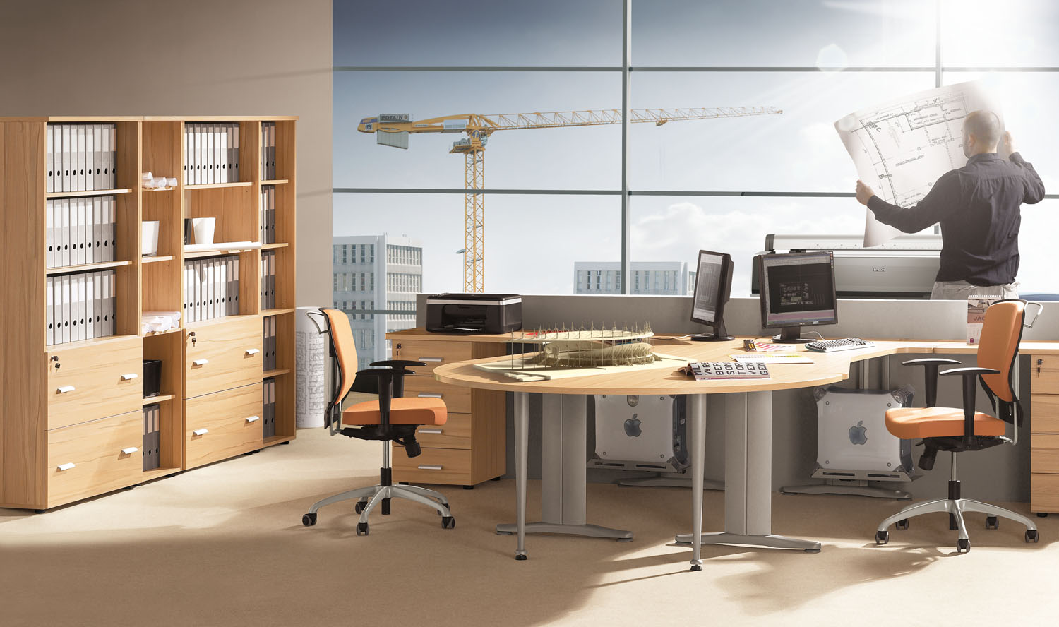 Victor VICTOR to oryginalne wzornictwo i ergonomia. Łukowe kształty oraz liczne możliwości konfiguracji brył ułatwiają funkcjonalne zaaranżowanie przestrzeni biurowej. Żaluzje oraz metalowe dodatki dopełniają wizję nowoczesnego biura.